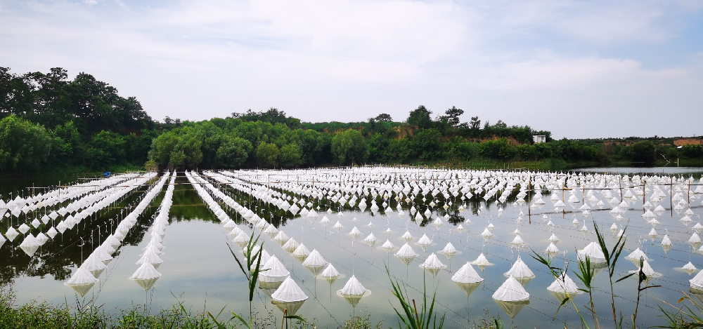 模式說明:(1)吊籠規格為直徑80厘米,高度1.45米,40目,投放密度100-150尾。(2)要求水深1.5米起,吊籠與吊籠間距0.5米,走道距離2米,5米一根樁。優缺點:優點:存活率···